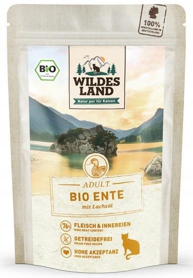 Mokra karma Bio kaczka z olejem z łososia Wildes Land jest odpowiednia dla dorosłych kotów wszystkich ras.