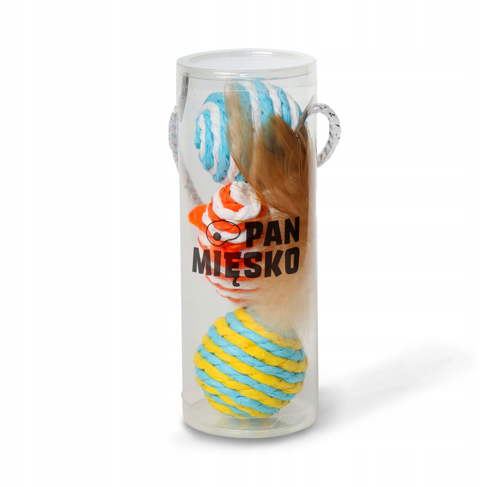 ZAWARTOŚĆ ZESTAWU: Dwie kolorowe piłeczki oraz jedna zabawka z piórkami – wszystko w poręcznym, przezroczystym opakowaniu